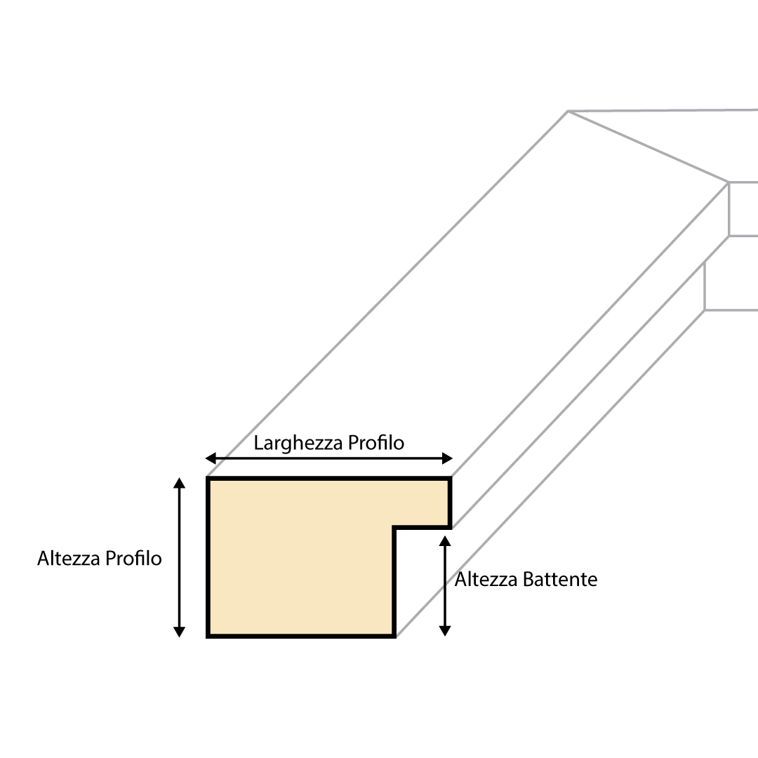 La dimensione orizzontale del profilo, misurata dalla parte esterna fino al bordo interno. Determina quanto "importante" e visibile sarà la cornice rispetto all'opera incorniciata.