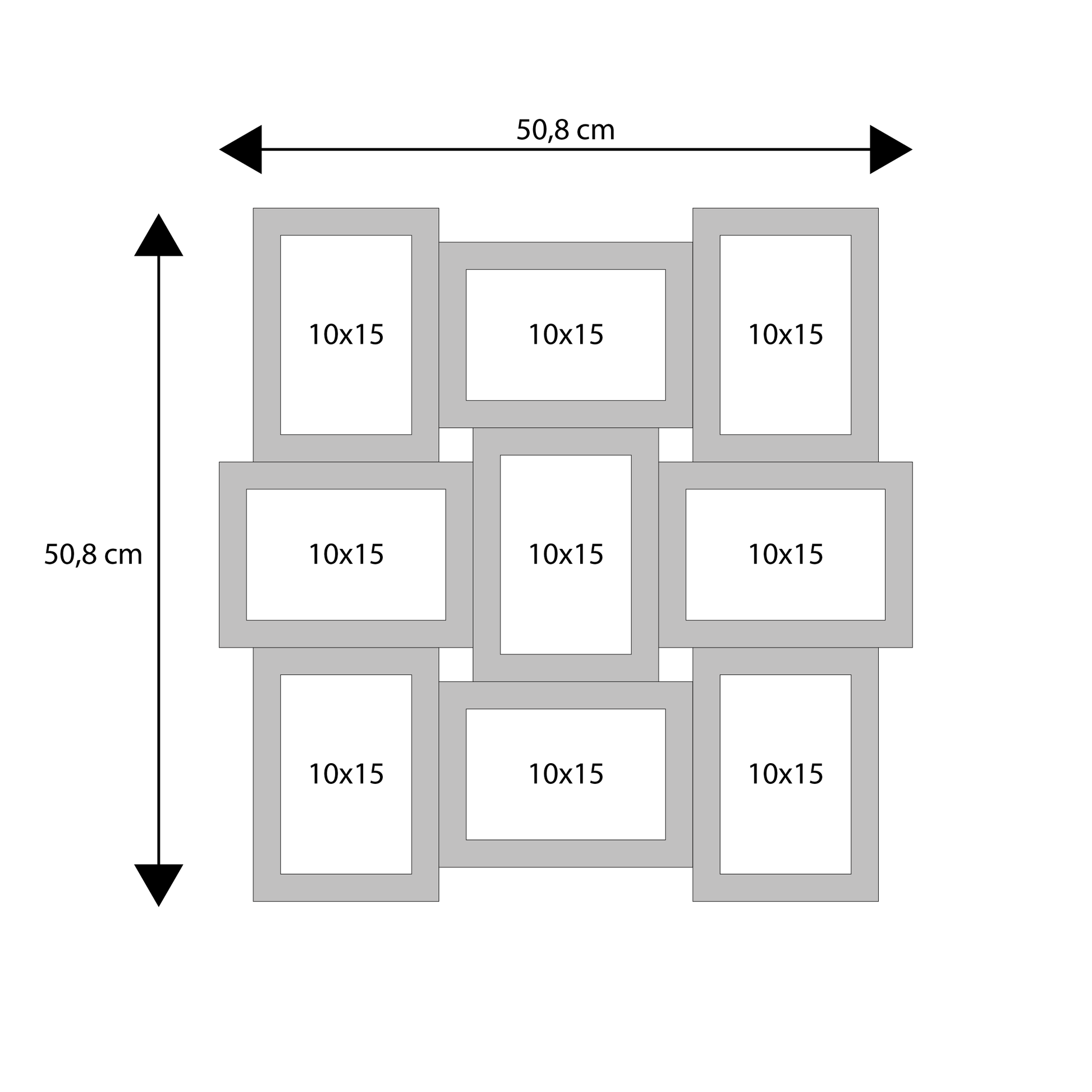 Cornice multipla FRCM0002 in legno composta da cornici con differenti posizionamenti, per 9 foto di dimensioni 10 x 15 cm