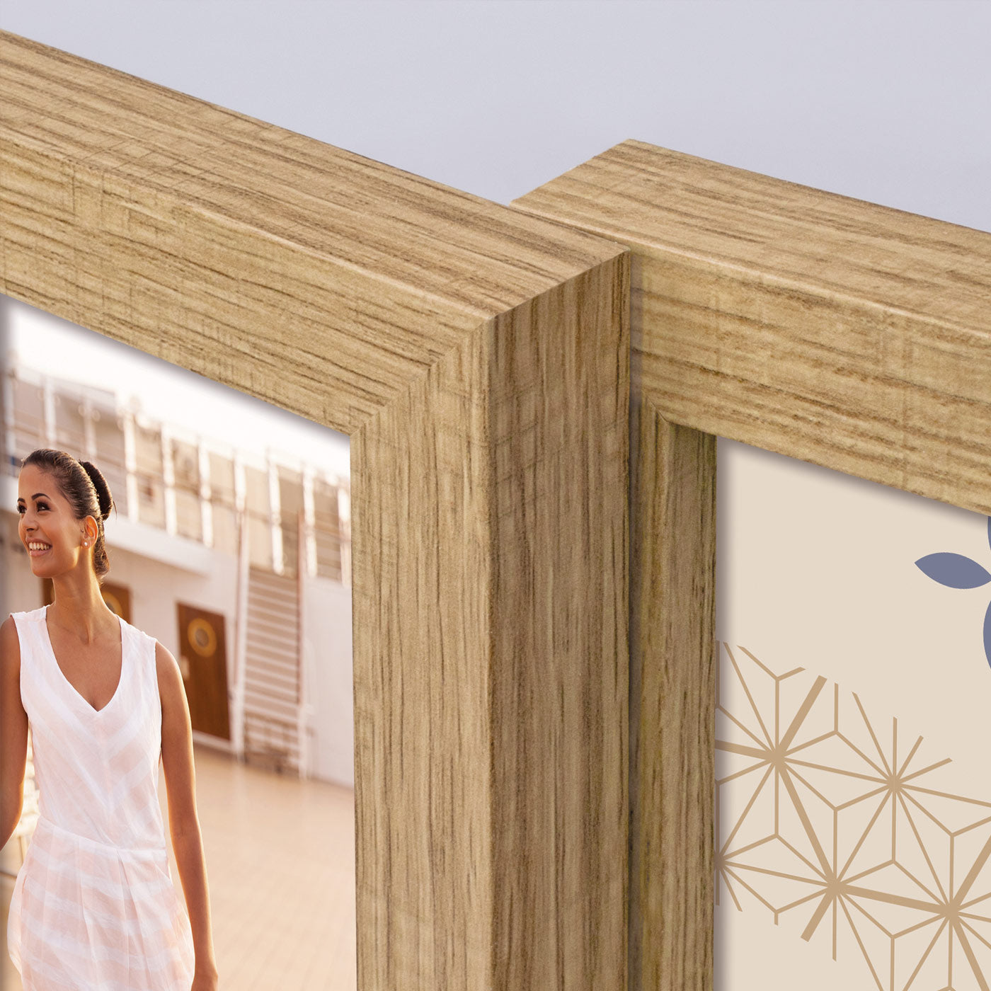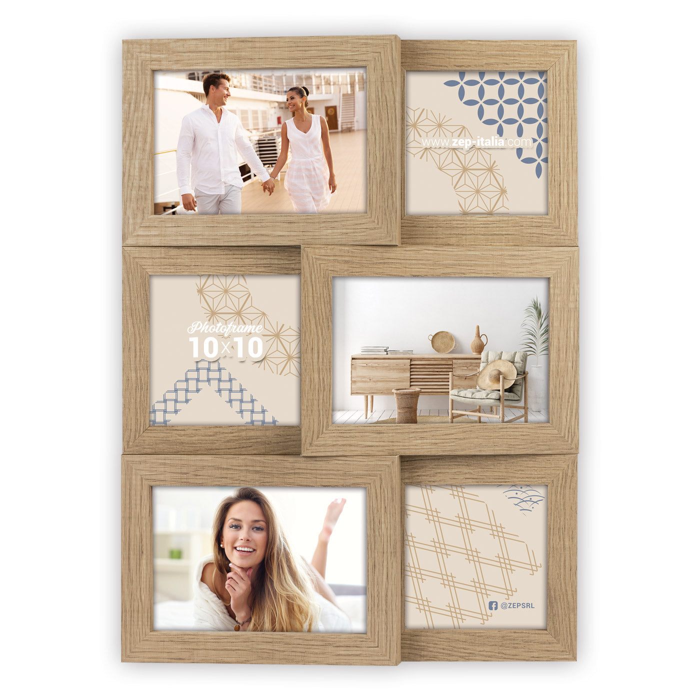 Cornice multifoto in legno, colore marrone, multifoto da parete, formata da cornici sovrapposte, per 6 foto, adatta per casa e ufficio.